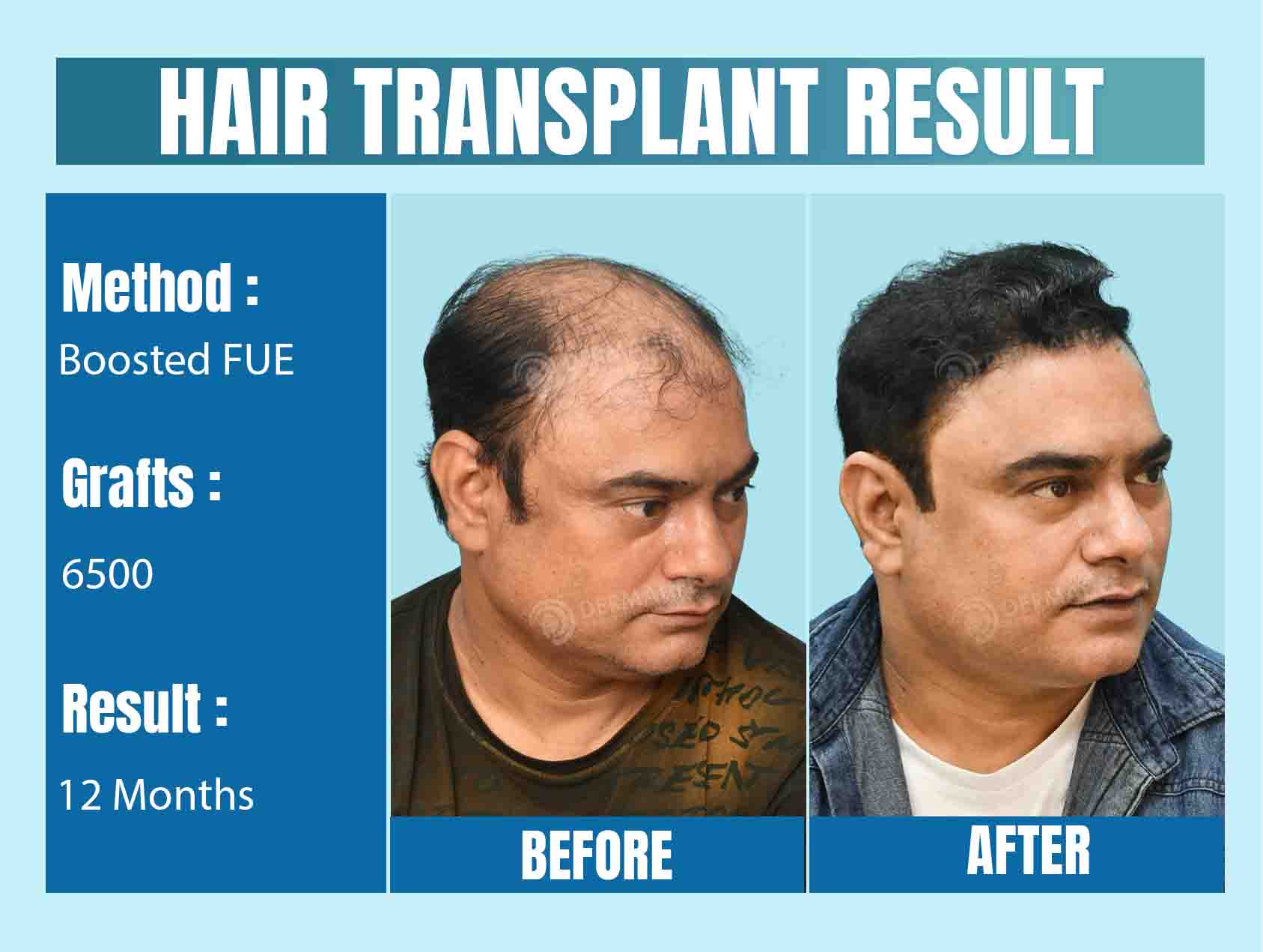 After a detailed session, he was diagnosed with Grade 5 hair loss and recommended 6500 hair grafts to cover his front and mid scalp areas.